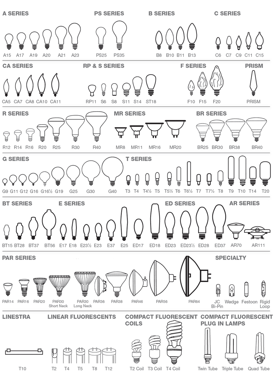 Here is an explanation of bulb shapes: Home Lighting 101: A Guide to Understanding Light Bulb Shapes, Sizes, and Codes