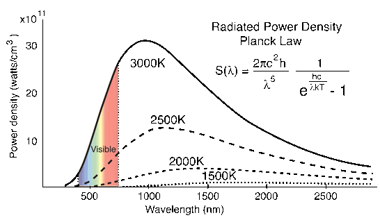 Note this is a graph of blackbody radiation. This is roughly what how the sun gets it’s light and roughly how incandescent get their light. So it’s all kind of the same stuff but at different temperatures.