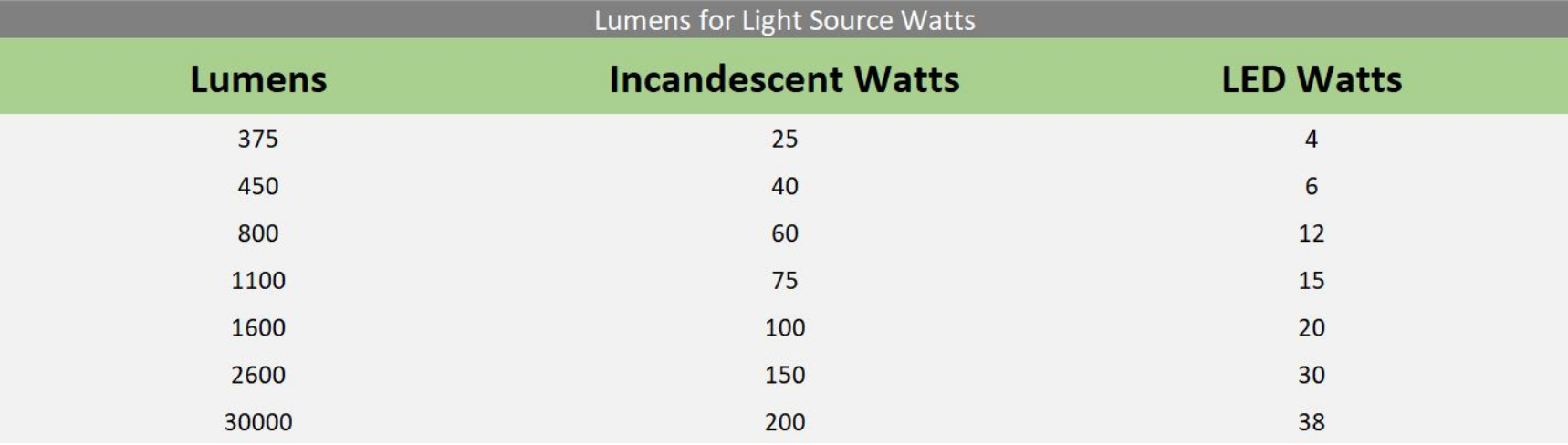 Lumens is a measure of brightness. The higher the number of lumens, the brighter the bulb. Back in the day instead of measuring brightness directly they decided to use the number of Watts (the amount of power/electricity the light used) as a rough approximation to how bright it would be. Unfortunately, older bulbs and incandescents might only report their wattage instead of including their lumens. Luckily there are good relation between the Watts an incandescent bulb uses and the bulbs brightness regardless of shape or size. I have a chart of the relation and some links in the appendix.