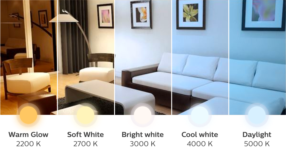 The color of a light (when it’s a standard color and not like green or blue or whatever) is measured in Kelvin. I explain why in the appendix (equation and everything) but just know that the higher the number the whiter/bluer the light and the lower the number the more orangey/red it is. Unfortunately, instead of companies slapping the 2700K on their lights they give it fancy names like “Soft White” and “Ocean Sunrise” (joke) so I dropped a little chart and an explanation of why we use Kelvin some links in the appendix.